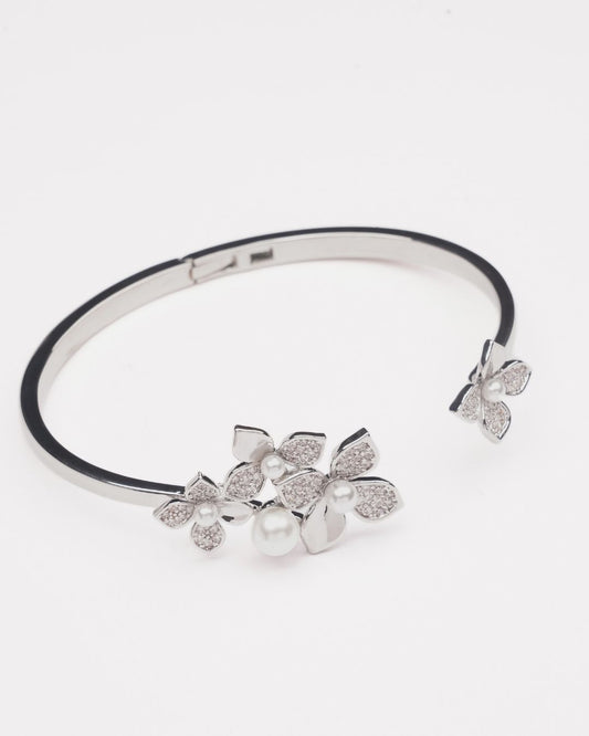 Rodium-Plated AD-Studded Kada with Pearls
