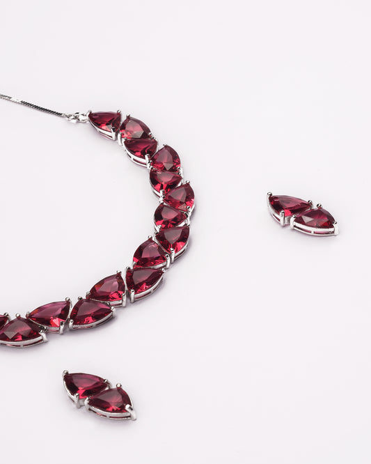 Rodium-Plated Ruby AD-Studded Necklace Set