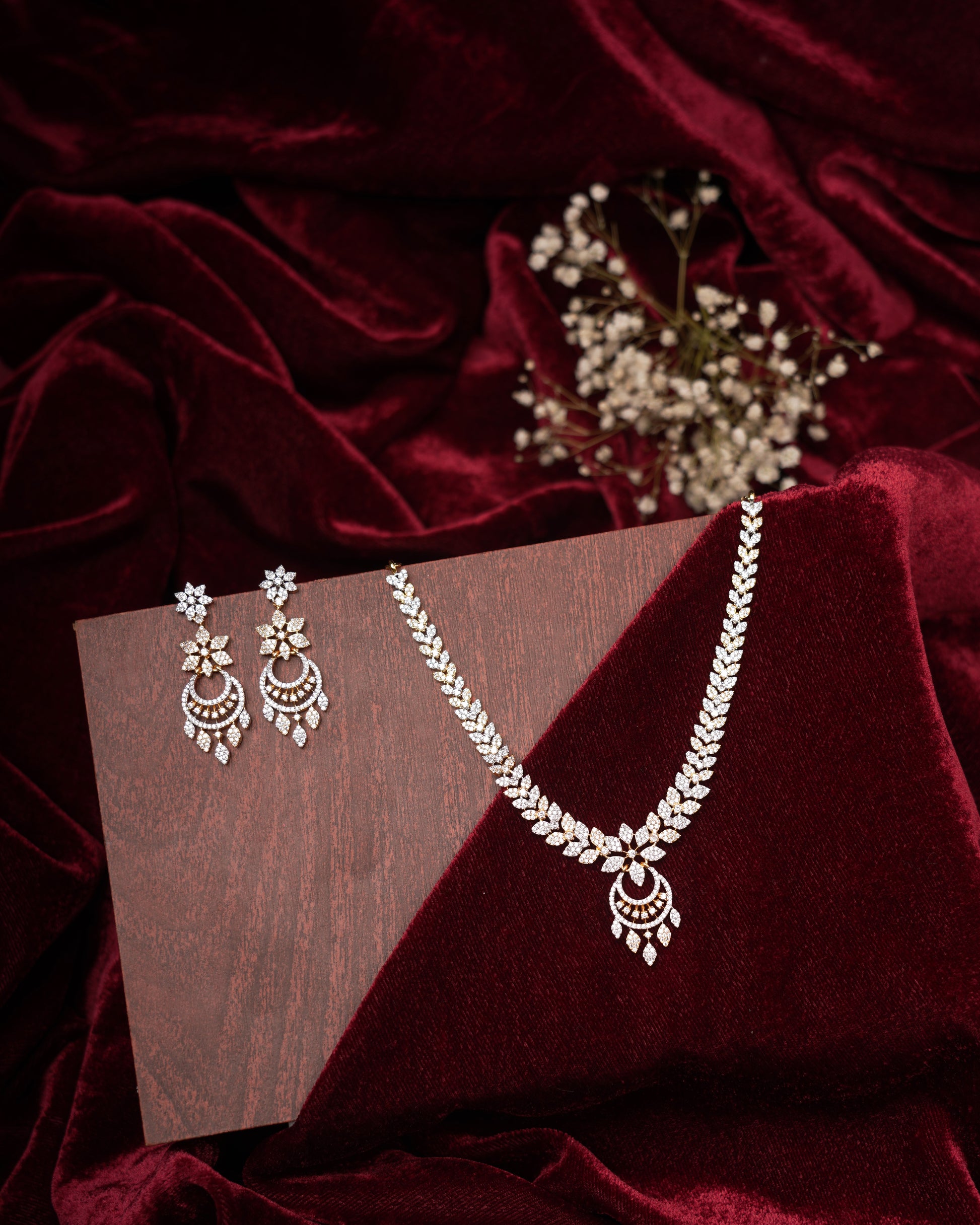 Gold & Rodium-Plated AD-Studded Necklace Set