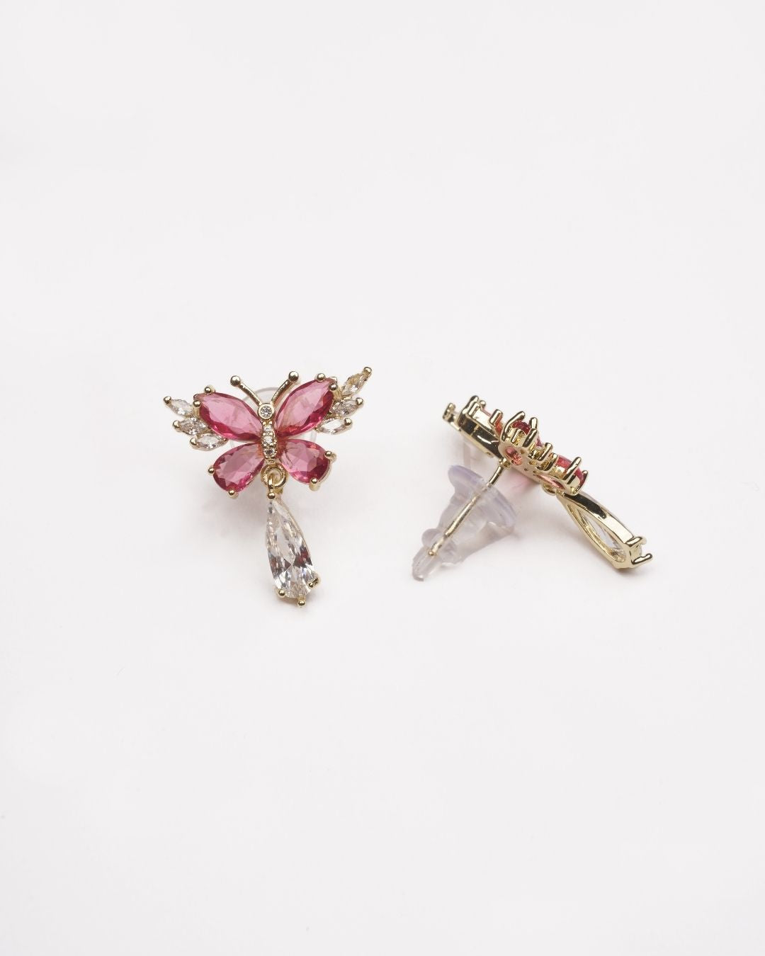 Gold-Plated Pink AD-Studded Butterfly Tops