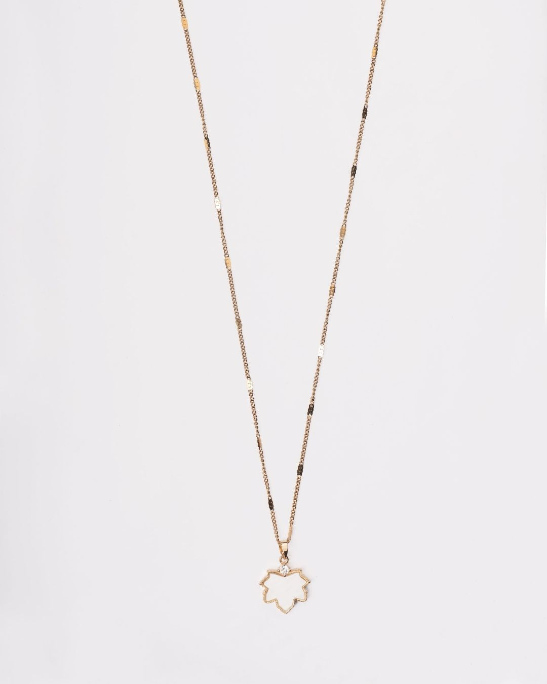 Gold Plated Mother of Pearl Stone AD Maple Leaf Pendant with Chain